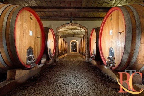 Following fermentation, the wine is transferred to large oak barrels—traditionally Slavonian or French oak—for a mandatory aging period of at least 38 months, with a minimum of 18 months in wood. This lengthy aging process slowly refines the wine’s structure, harmonizing robust tannins and developing its signature bouquet.